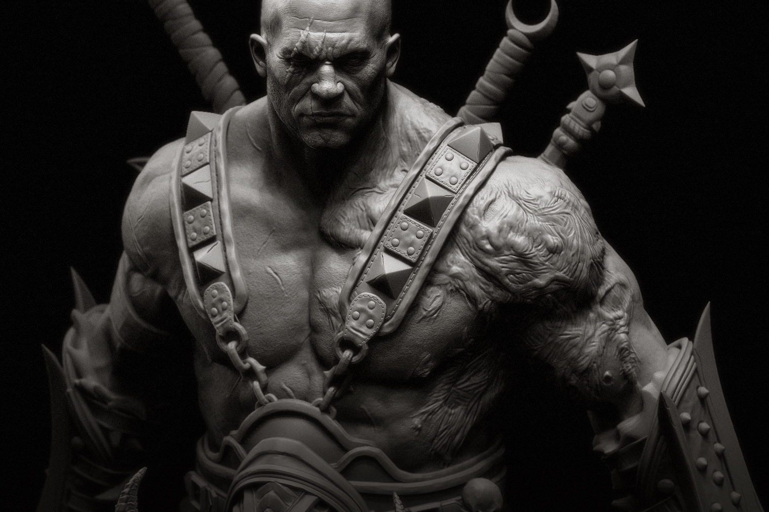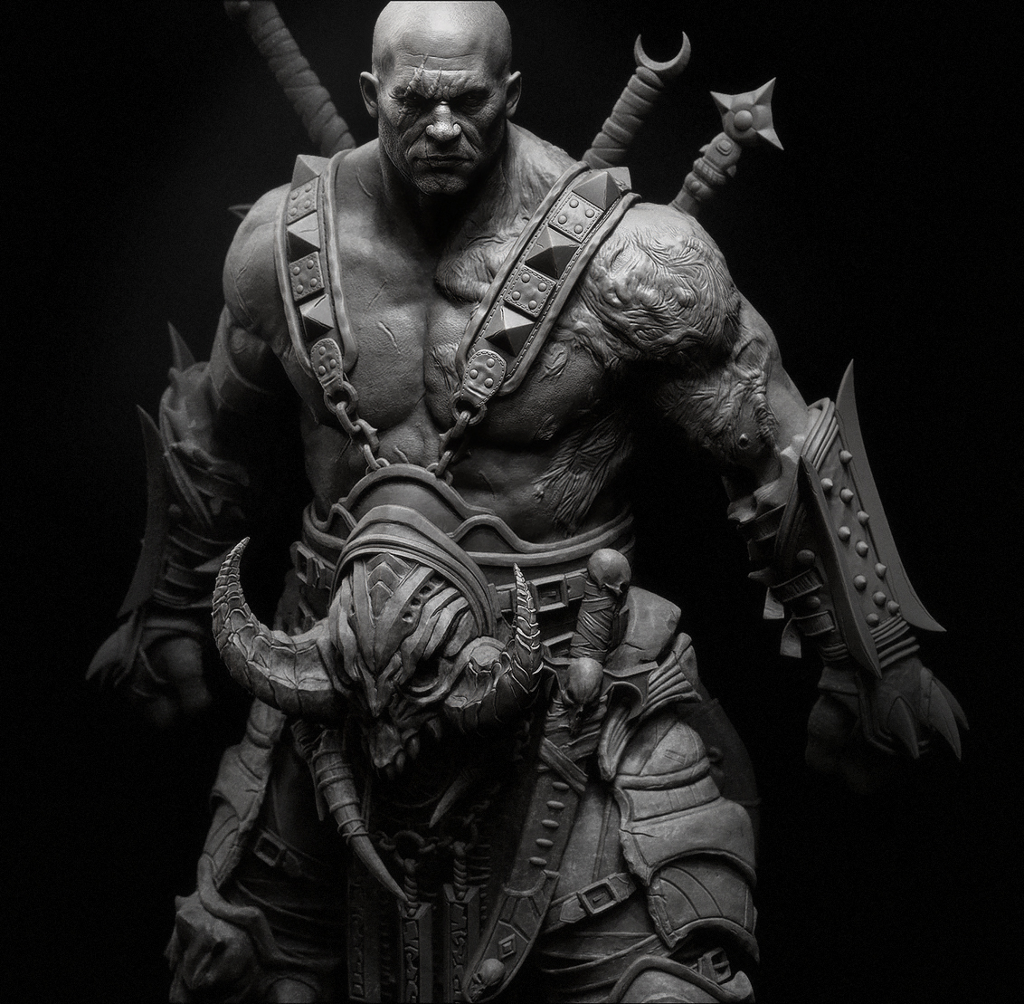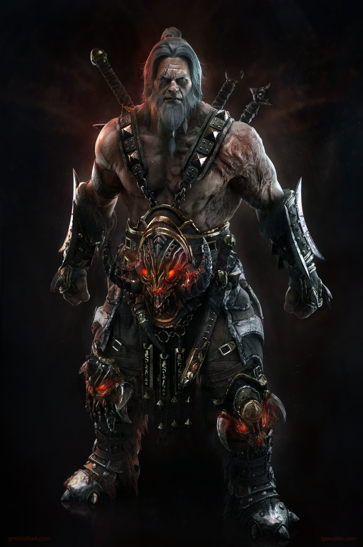 I blocked out the body and accessories and finished the detail and modeling with Igor. He worked on the highres assets, details and textures. Posed and rendered by both of us.